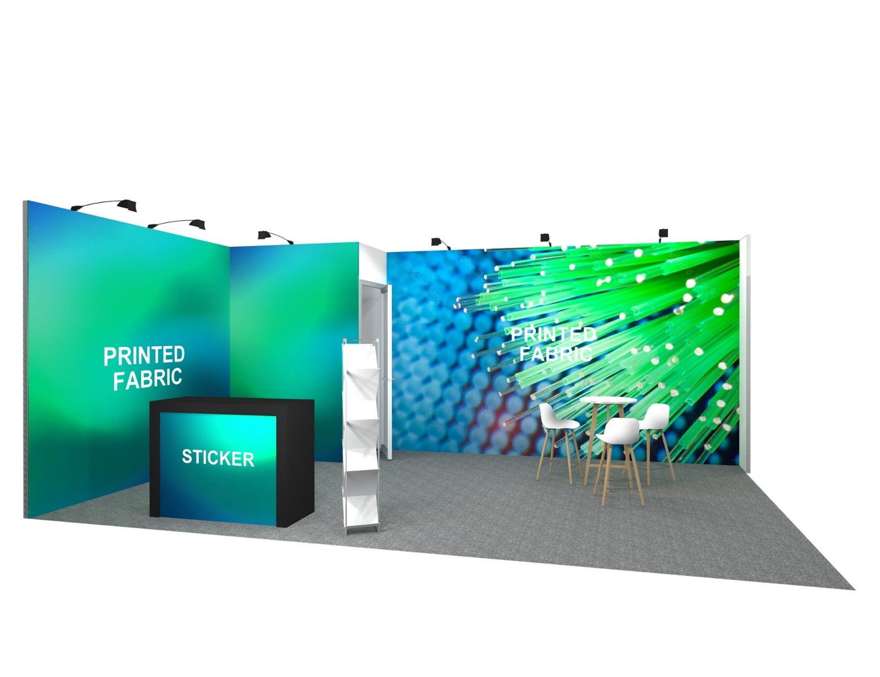 Hinweis: Halten Sie die Möblierung minimalistisch, um ein geräumiges und einladendes Standdesign zu bewahren.