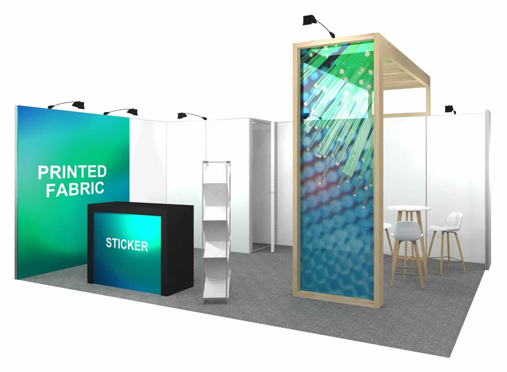 | 7.0 m² | 1 high table, 2 bar stools, 1 sideboard, 1 counter, 1 waste bin, 1 brochure stand, power | 650 | 900 | 1100 |