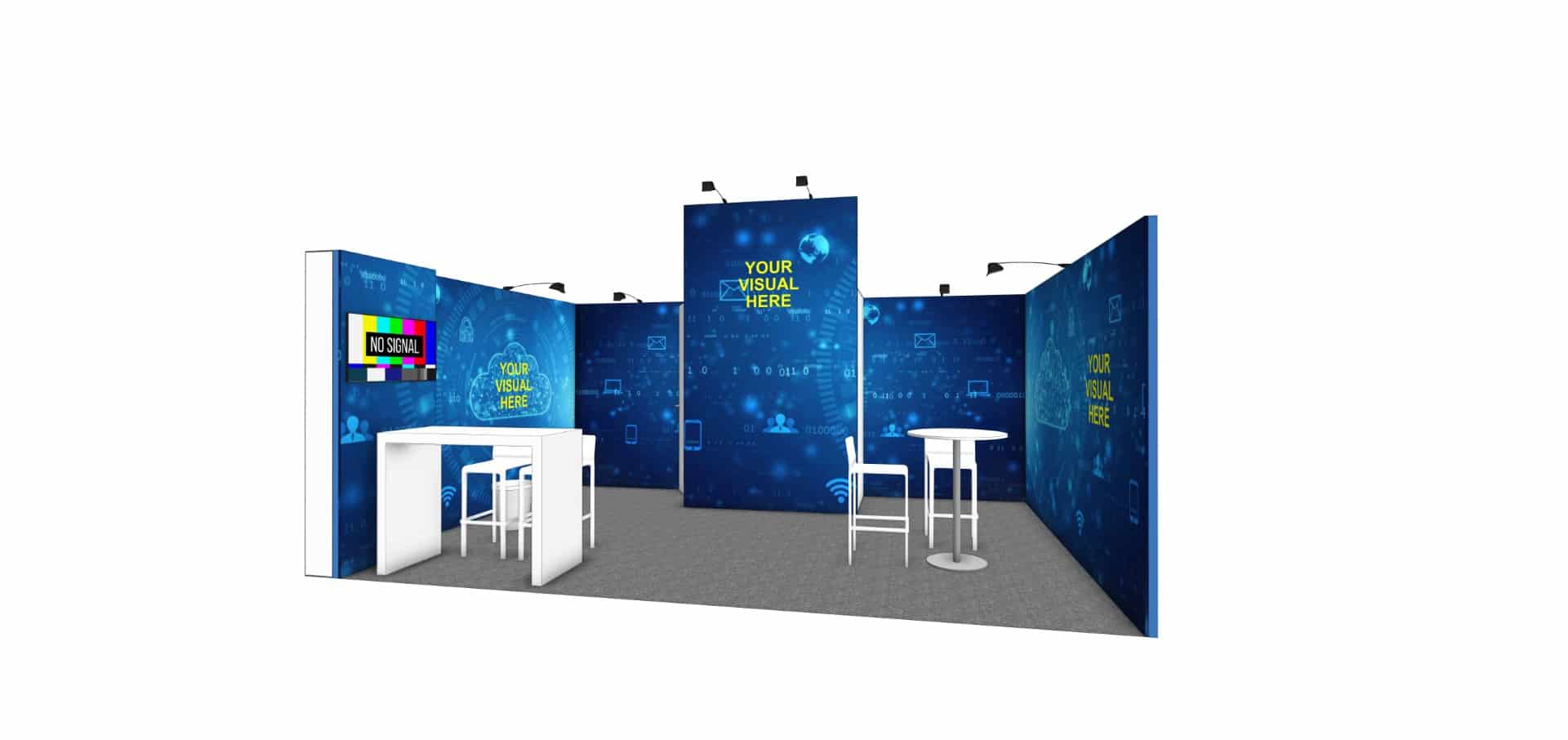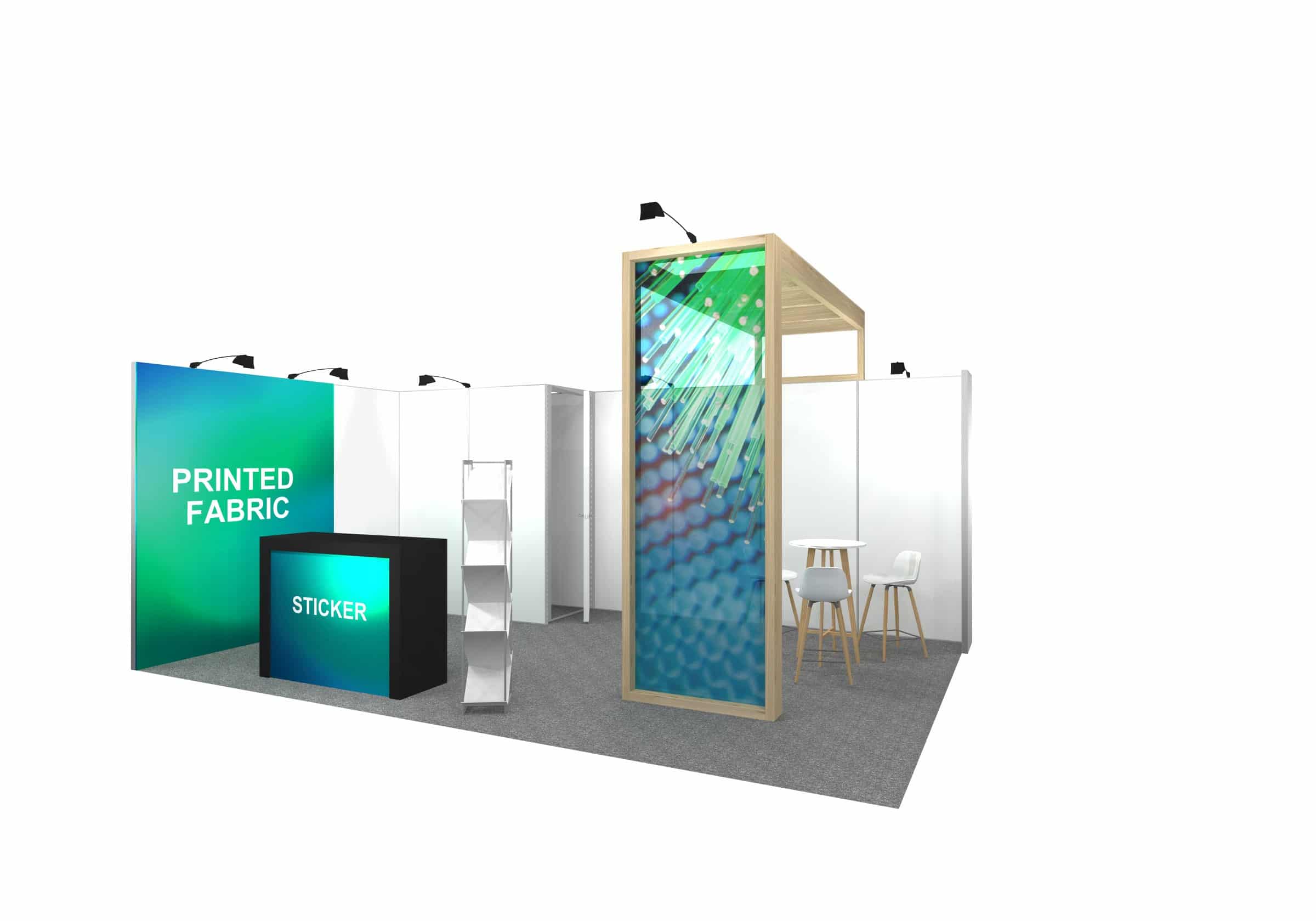 7.0 m² | 1 high table, 2 bar stools, 1 sideboard, 1 counter, 1 waste bin, 1 brochure stand, power | 650 | 900 | 1100 |